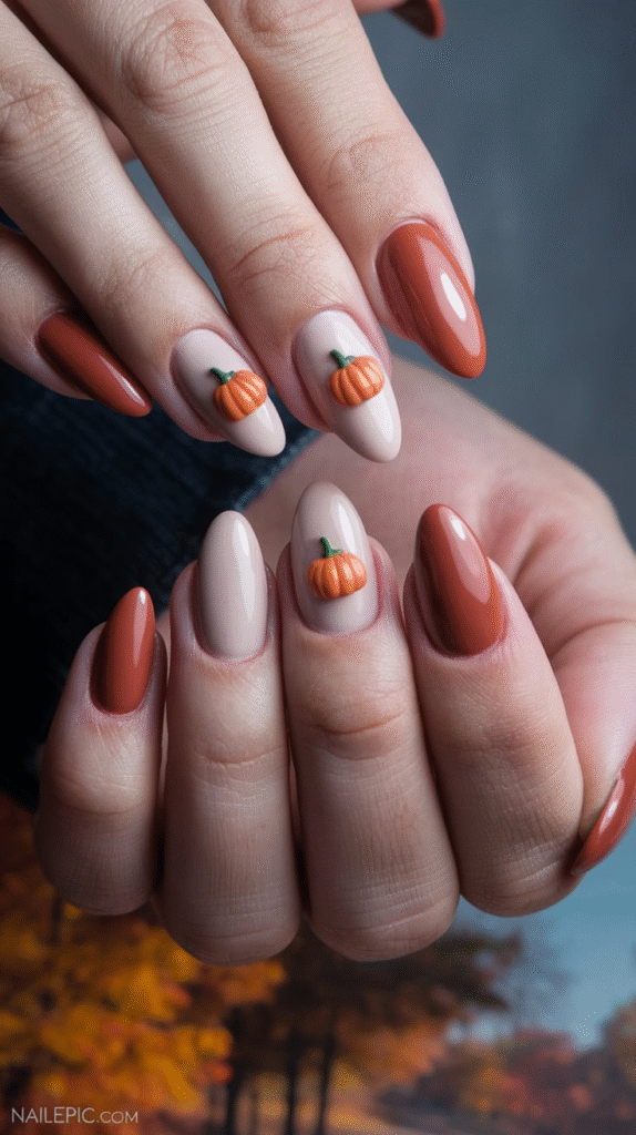 🎃 1️⃣ Pumpkin-Themed Thanksgiving Nails