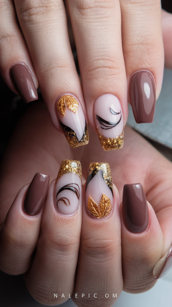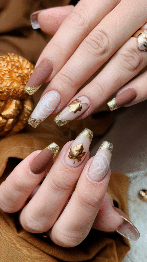 🍁 2️⃣ Pretty Fall Thanksgiving Combo Nails