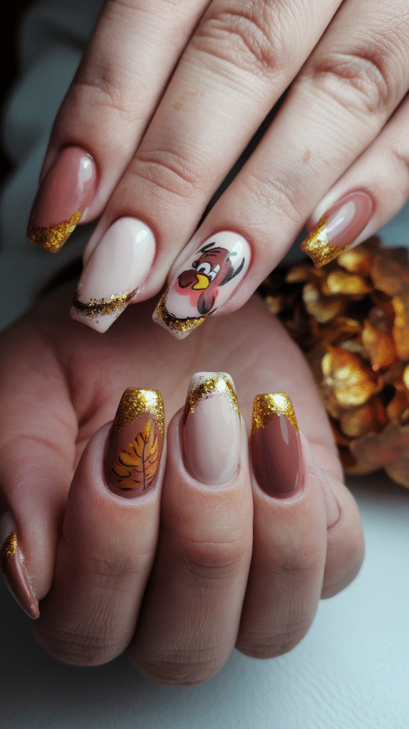 💡 Tip: Keep other nails neutral to make the turkey stand out