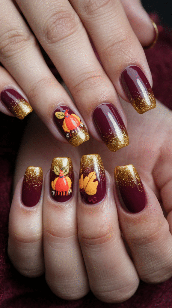 ✨ 6️⃣ Glitter Thanksgiving Nails