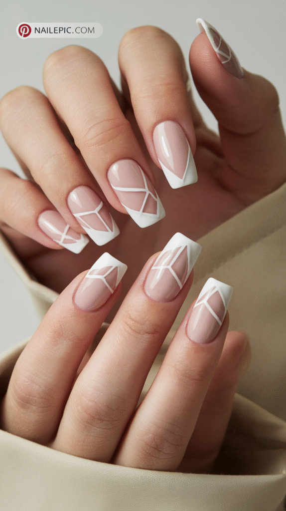 ⭐ 6️⃣ Angled White Tips, Modern Twist